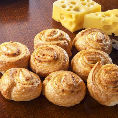 WHEAT flour, cheese filling 29% (CHEESE 50%, firming agent: calcium chloride, water, filling powder (WHEAT flour, thickeners: modified potato starch, sodium alginate; WHEY powder, EGG powder, iodized salt, raising agents: diphosphates, sodium carbonates; dried vegetables: onion, garlic; yeast extract), pea fiber, WHEAT protein, breadcrumbs (WHEAT), bulking agent: sodium lactate, rapeseed oil, salt), margarine (palm fat, rapeseed oil, water, emulsifiers: mono- and diglycerides of fatty acids, rapeseed lecithin; BUTTER, salt, preservative: sorbic acid, acidity regulator: citric acid, flavour, colour: beta-carotene), water, whole EGG liquid, yeast, sugar, glaze (water, pea protein, dextrose, corn starch), salt, WHEAT GLUTEN, emulsifier: E472e, flour treatment agent: ascorbic acid, enzymes (WHEAT). May contain traces of soy, nuts, mustard and lupin..