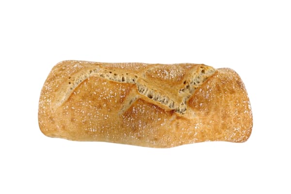 Rustic bread with a crispy crust, pre-baked in a stone oven. Made with natural wheat sourdough. Clean label. Lactose free. Vegan. Palm oil